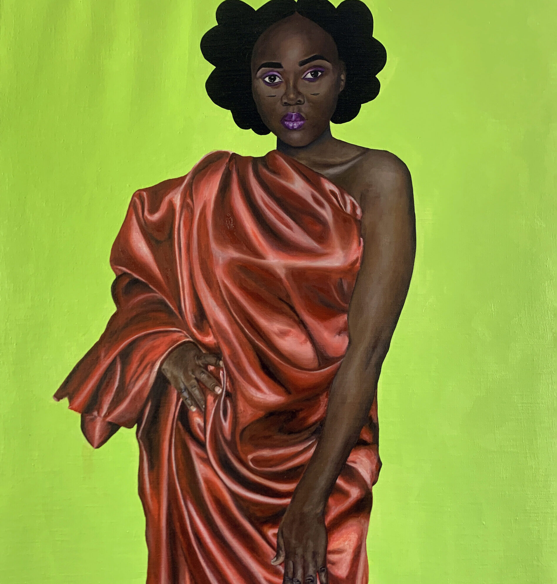 Orioye Bukola (b. 1993, Osogbo, Nigeria) is a self-taught artist with a degree in Chemistry from the University of Ilorin (2015). Trained under Tope Fatumbi at Topfat Art Gallery in 2019, Orioye’s work explores African spirituality, identity, memory, and cultural heritage through metaphor-rich narratives that bridge the past, present, and future.