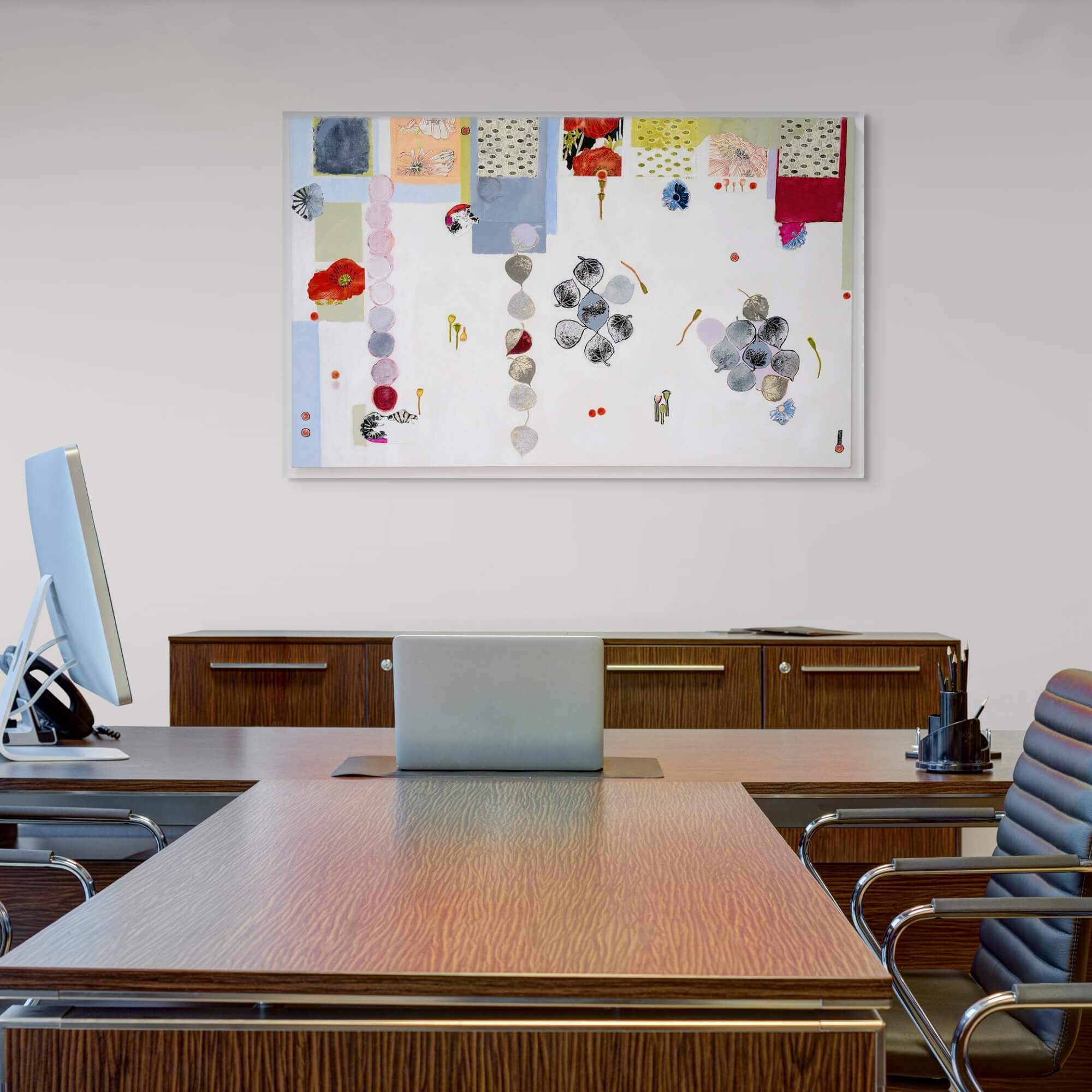 – mixed media on canvas, handmade papers, fabrics, acrylic