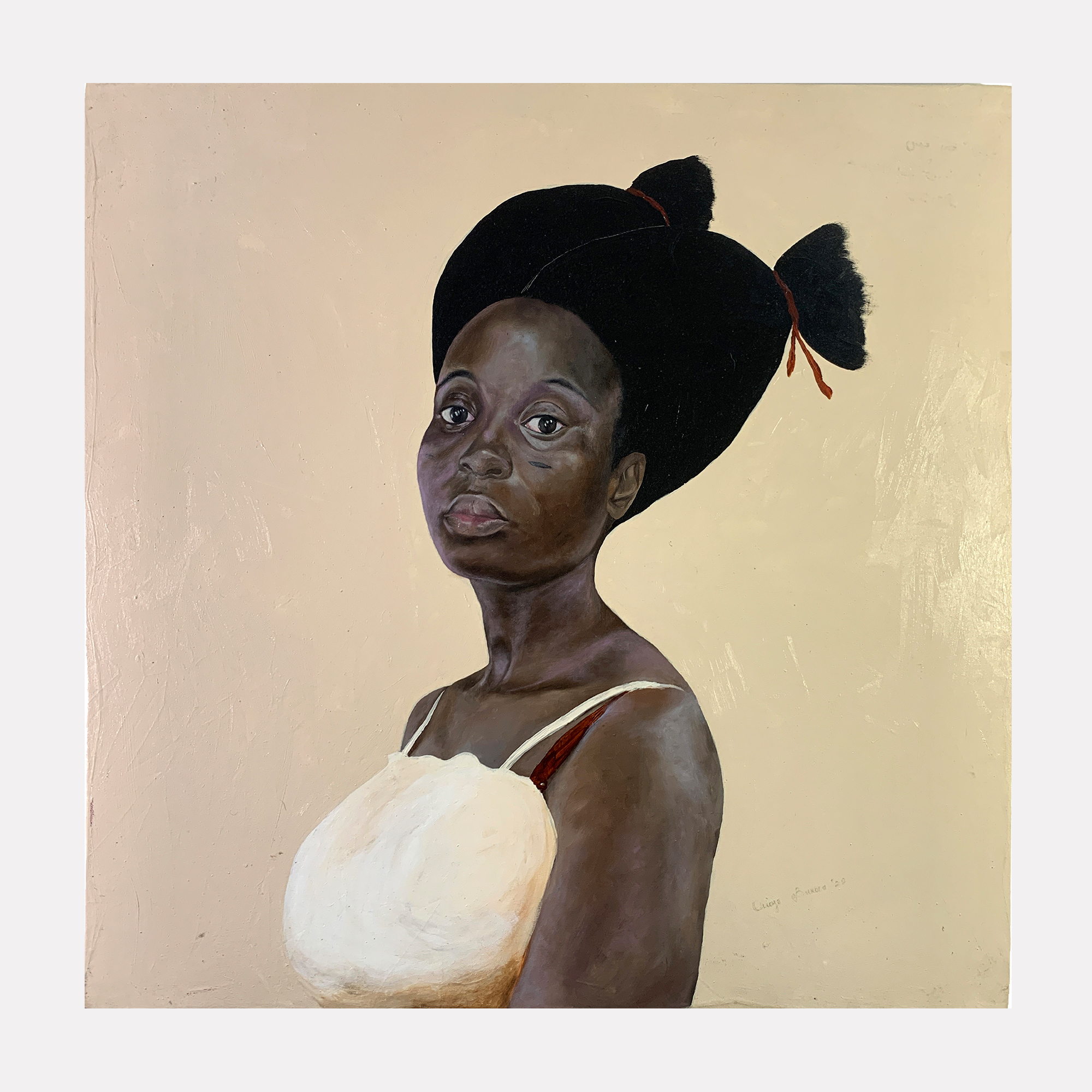 Orioye Bukola (b. 1993, Osogbo, Nigeria) is a self-taught artist with a degree in Chemistry from the University of Ilorin (2015). Trained under Tope Fatumbi at Topfat Art Gallery in 2019, Orioye’s work explores African spirituality, identity, memory, and cultural heritage through metaphor-rich narratives that bridge the past, present, and future.