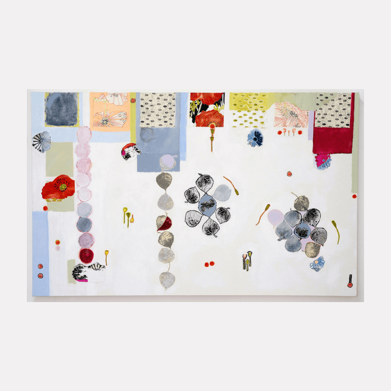 – mixed media on canvas, handmade papers, fabrics, acrylic