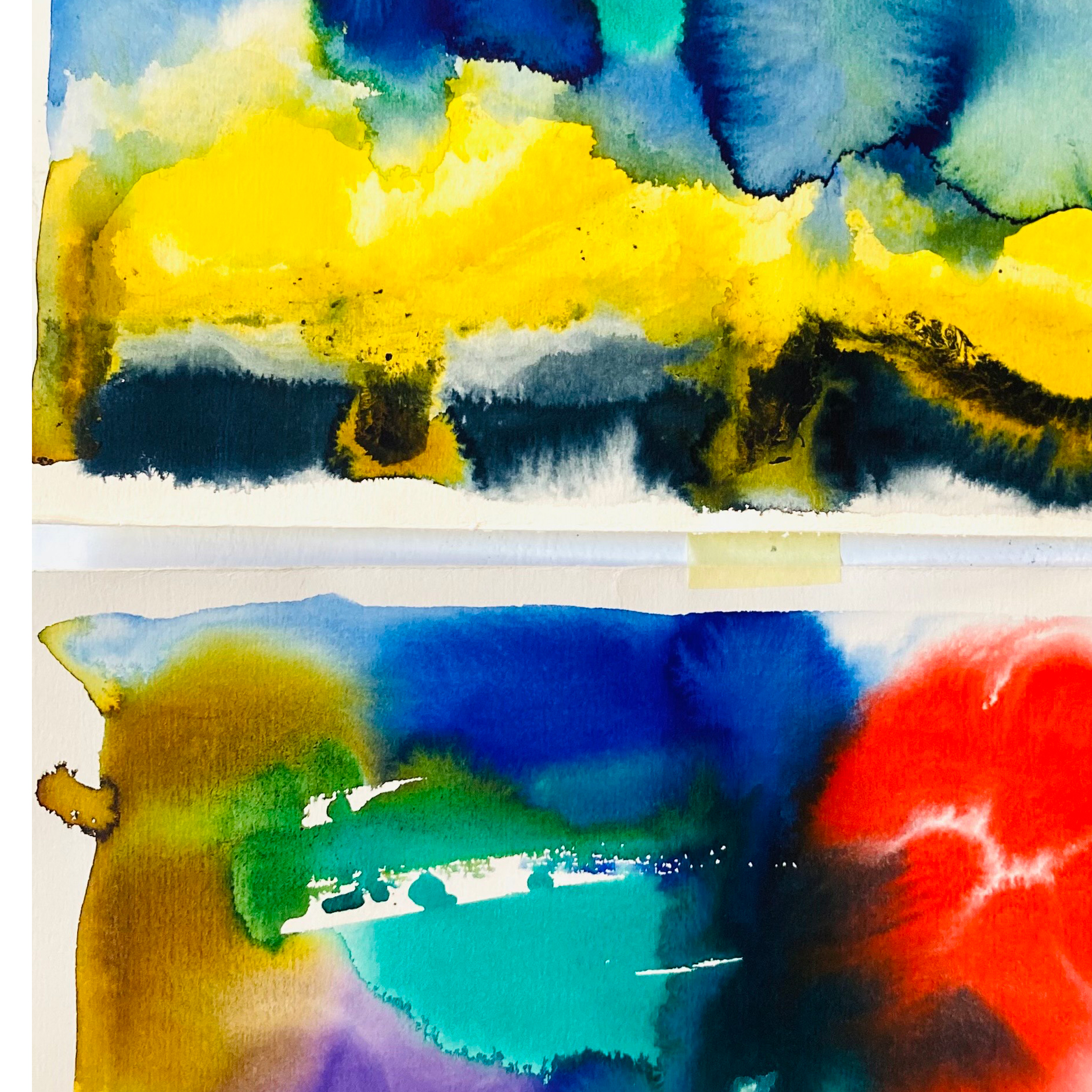 I work with watercolor, acrylic, markers, and oil pastels. The variety of art materials allows me to observe and discover.